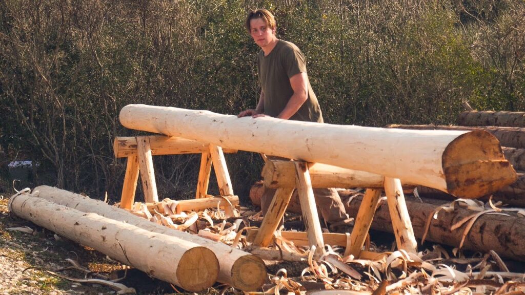 - Traditional tools & methods — Rather than using large industrial equipment to debark or plane logs, the video leans into hand tools and the slower pace of manual woodworking. This gives the project a more personal, authentic feel, and likely increases the sense of satisfaction when the cabin finally stands.